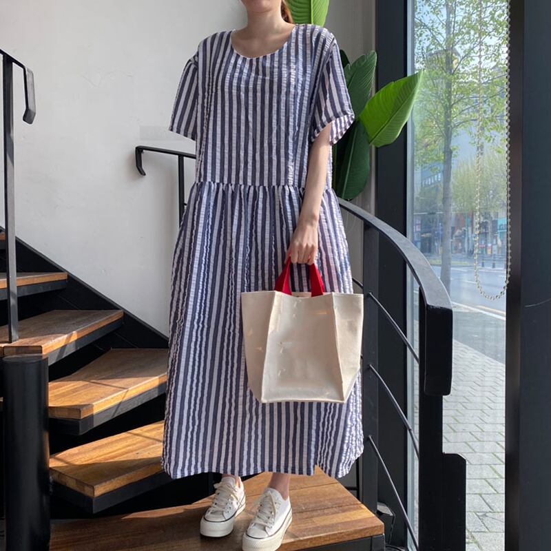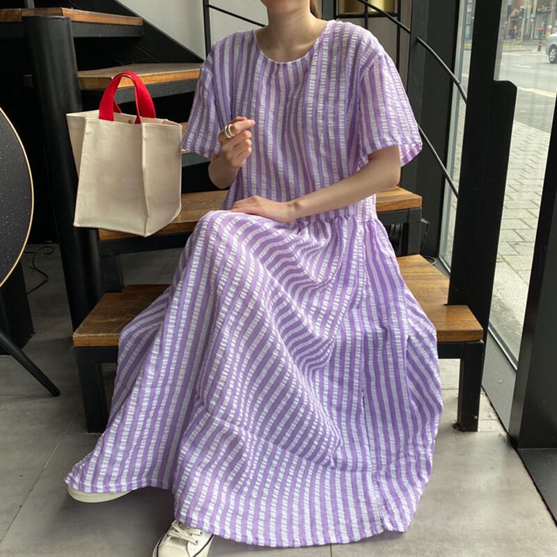 新品 ストライプラウンドネックカジュアルロングスカート ⦿韓国 オルチャン K-pop アイドル ジャケット スーツ ワンピース カーディガン ニット フーディー トレーナー キャミソール スカート シャツ ブラウス 5A2584354