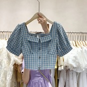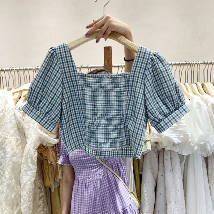 新品 サマースリーブショートチェック柄プルオーバー 夏物 スクウェア ⦿韓国 オルチャン K-pop アイドル ジャケット スーツ ワンピース カーディガン ニット フーディー トレーナー キャミソール スカート シャツ ブラウス 5B7236359