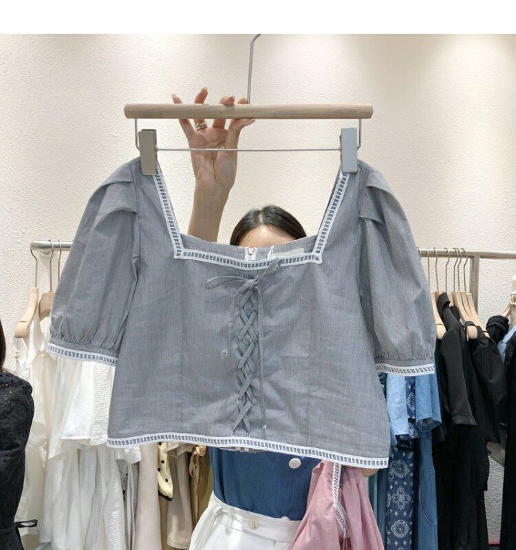 新品 サマーストライプスリーブトップス スウィート 夏物 ピュア スクウェア ⦿韓国 オルチャン K-pop アイドル ジャケット スーツ ワンピース カーディガン ニット フーディー トレーナー キャミソール スカート シャツ ブラウス 5B7593415