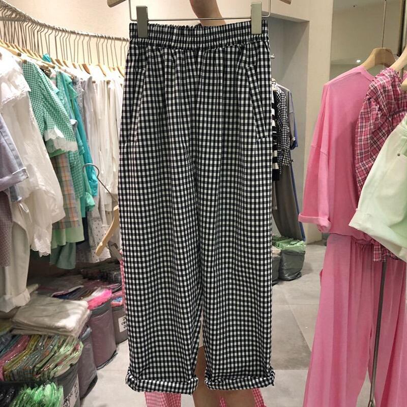 新品 ストレッチ★チェック柄サマーパンツ カジュアル エラスティック 伸縮 夏物 ⦿韓国 オルチャン K-pop アイドル ジャケット スーツ ワンピース カーディガン ニット フーディー トレーナー キャミソール スカート シャツ ブラウス 5B3448853