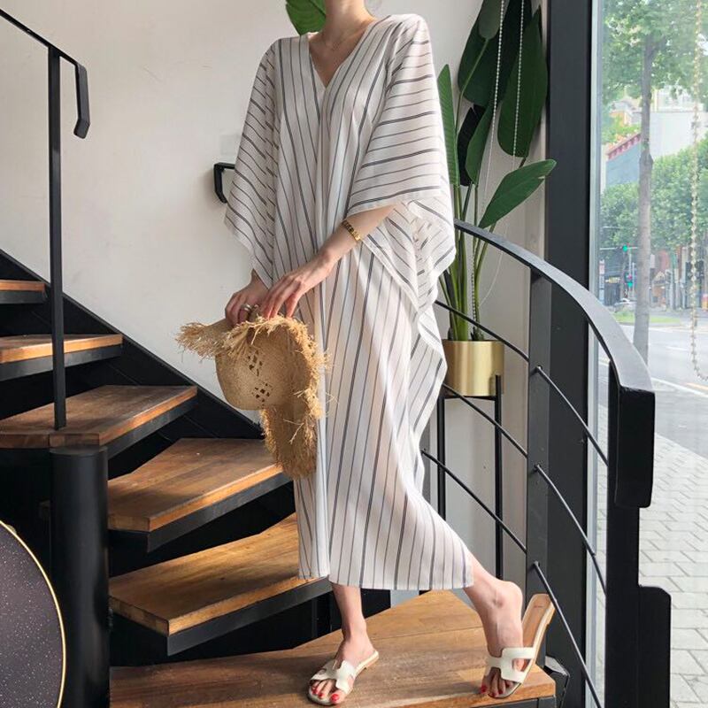 新品 スタンダードVネックカジュアルロングストライプ レトロ ⦿韓国 オルチャン K-pop アイドル ジャケット スーツ ワンピース カーディガン ニット フーディー トレーナー キャミソール スカート シャツ ブラウス 5A7052191