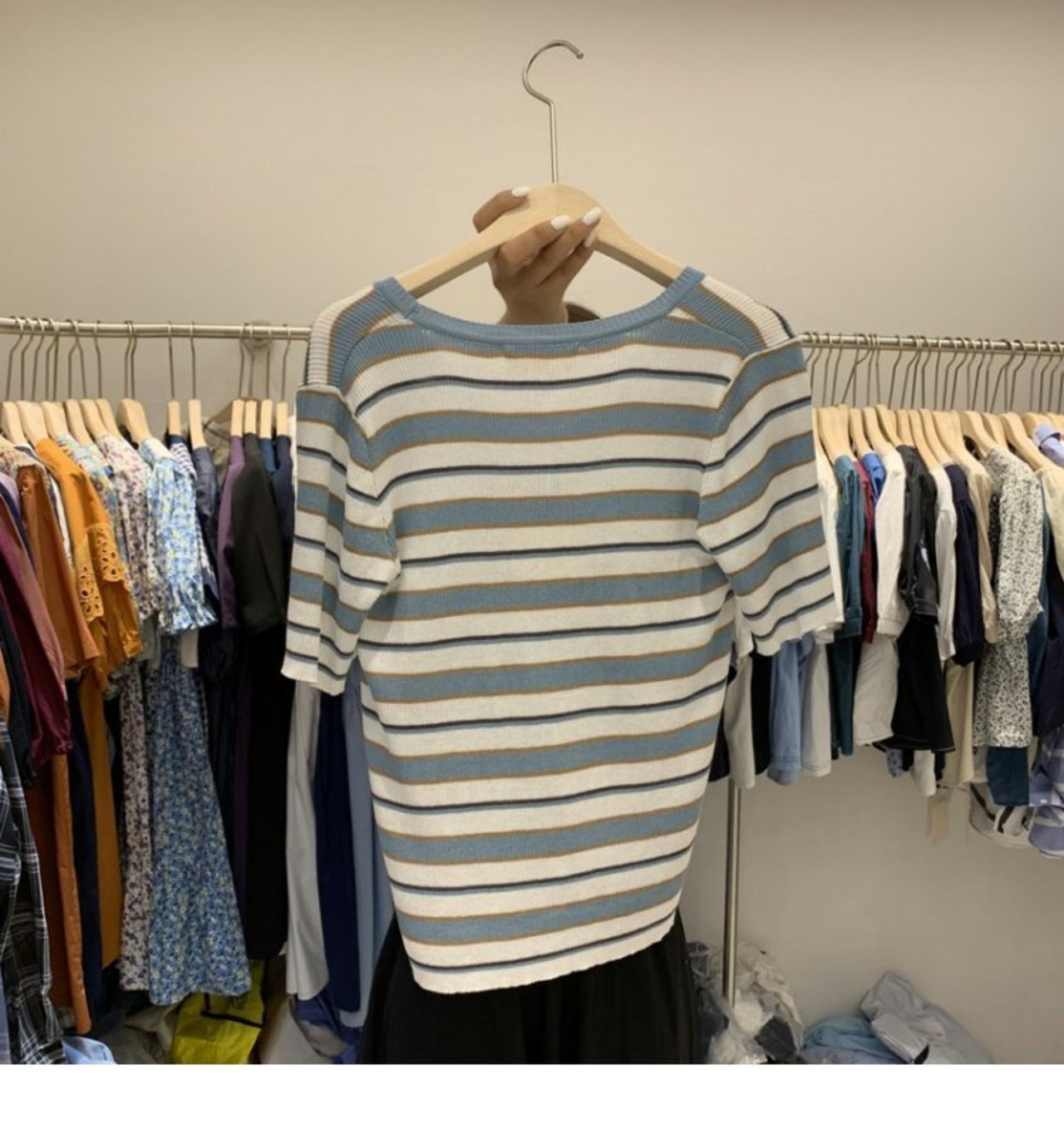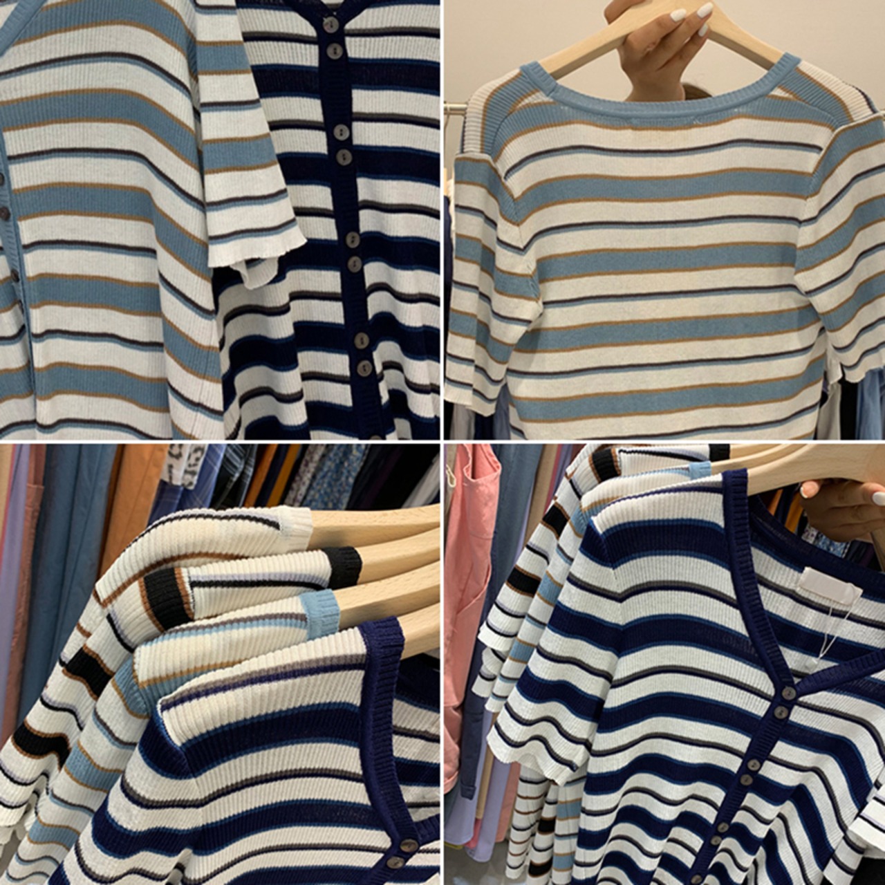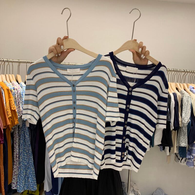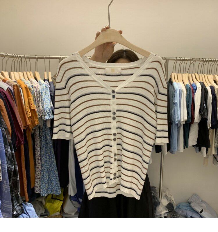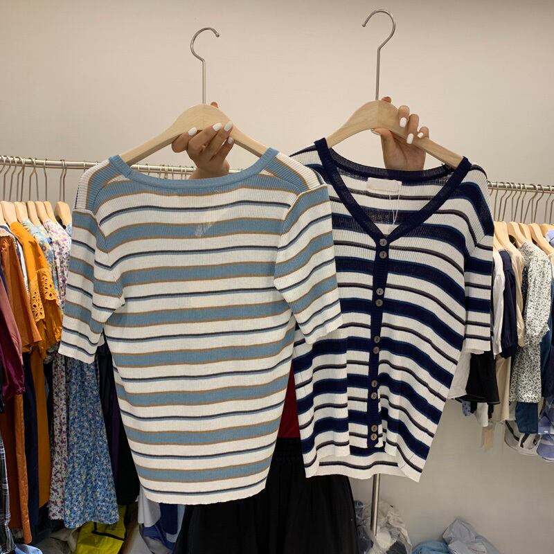 新品 ストライプVネック♥カワイイ♥ニットトップス シルク ⦿韓国 オルチャン K-pop アイドル ジャケット スーツ ワンピース カーディガン ニット フーディー トレーナー キャミソール スカート シャツ ブラウス 5B8491635