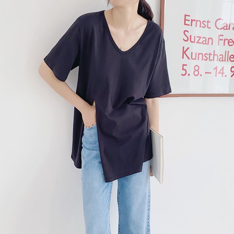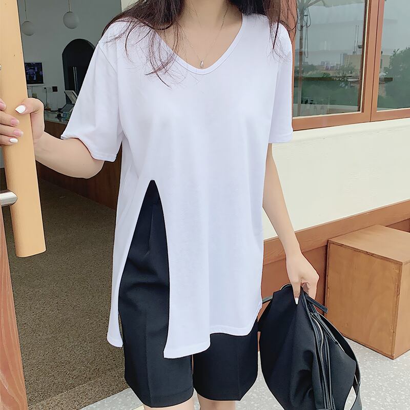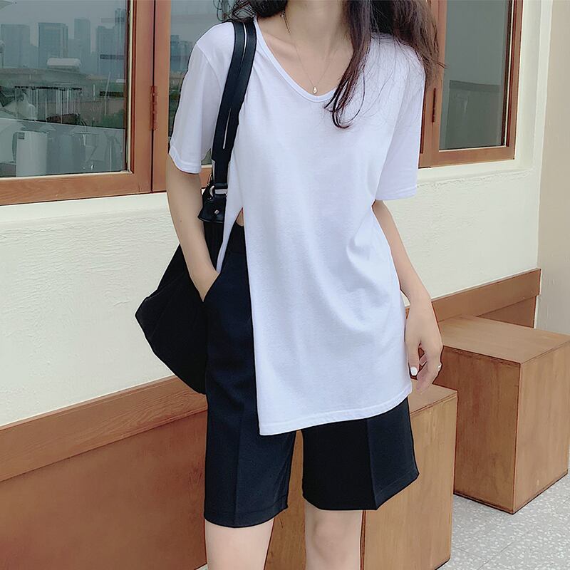新品 VネックスリットTシャツ ハイウェストカジュアルパンツ ⦿韓国 オルチャン K-pop アイドル ジャケット スーツ ワンピース カーディガン ニット フーディー トレーナー キャミソール スカート シャツ ブラウス 5A8147365 | K clothig adult