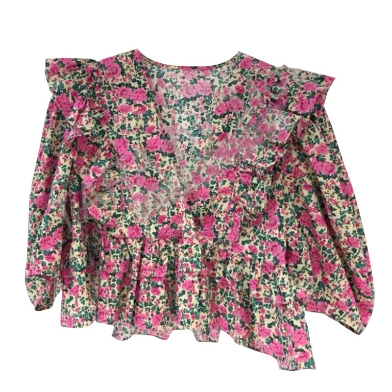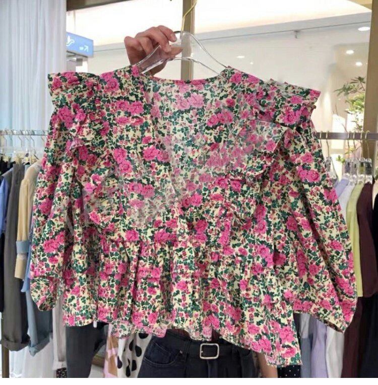 新品 サマーVネックスリーブショート花柄★♡トップス スウィート 夏物 ⦿韓国 オルチャン K-pop アイドル ジャケット スーツ ワンピース カーディガン ニット フーディー トレーナー キャミソール スカート シャツ ブラウス 5B2985613