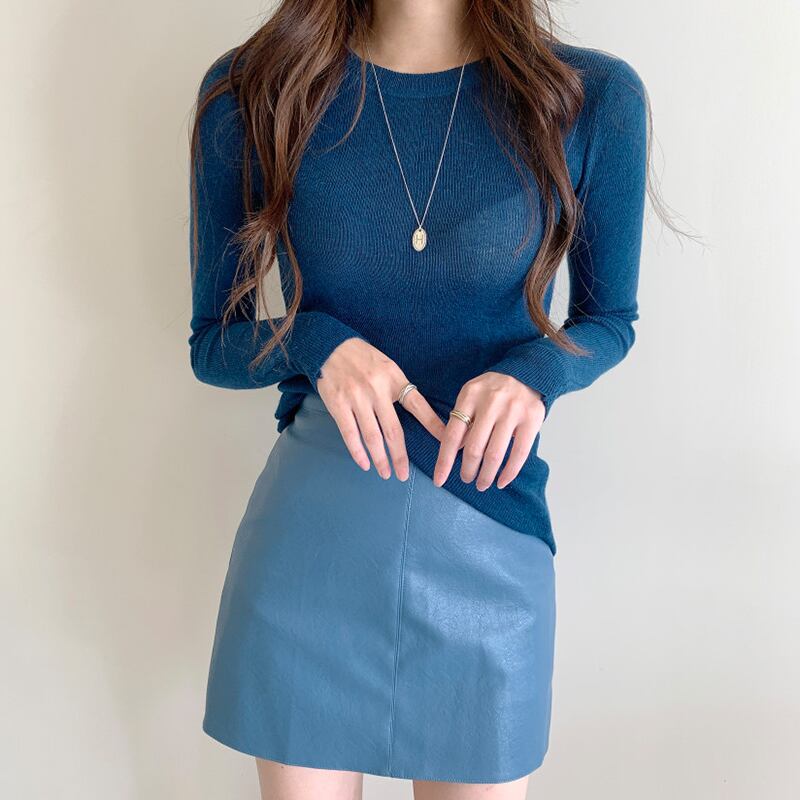 新品 ラウンドネックスリム♥カワイイ♥セーター 今年流行☆レザースカート ロング シルク ⦿韓国 オルチャン K-pop アイドル ジャケット スーツ ワンピース カーディガン ニット フーディー トレーナー キャミソール スカート シャツ ブラウス 5A5169510