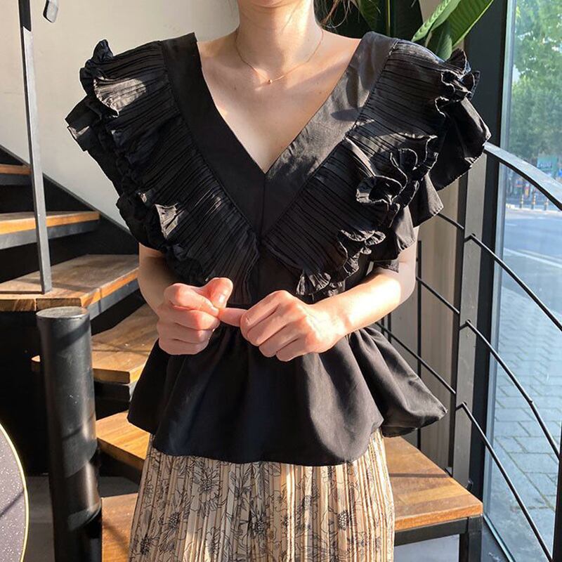 新品 Vネックプリーツスリーブシャツブラウスエスニックプリント柄スカート ロング ⦿韓国 オルチャン K-pop アイドル ジャケット スーツ ワンピース カーディガン ニット フーディー トレーナー キャミソール スカート シャツ ブラウス 5A4119242