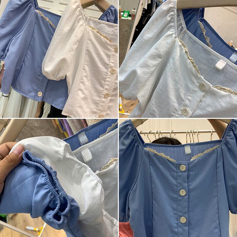 新品 レーススリーブショートトップス コットン ステッチ ⦿韓国 オルチャン K-pop アイドル ジャケット スーツ ワンピース カーディガン ニット フーディー トレーナー キャミソール スカート シャツ ブラウス 5B0126838