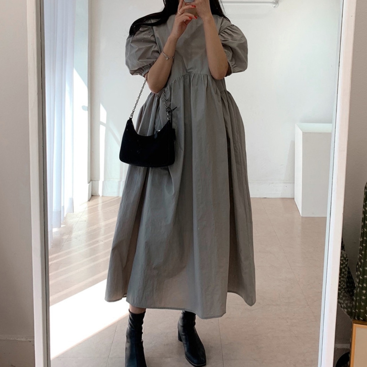 新品KOREAシフォンラウンドネックプリーツワンピースドレス パフスリーブ ⦿韓国 オルチャン K-pop アイドル ジャケット スーツ ワンピース カーディガン ニット フーディー トレーナー キャミソール スカート シャツ ブラウス 5A5811901 | K clothig adult