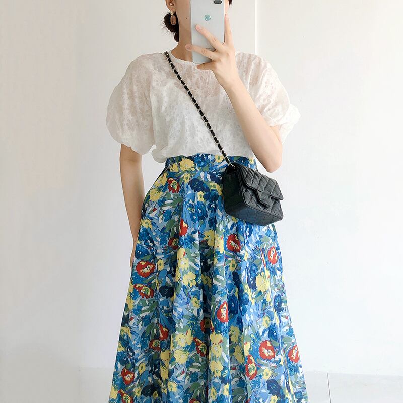 新品 スタンダードラウンドネックスリーブシャツブラウス花柄スカート ロング レトロ ⦿韓国 オルチャン K-pop アイドル ジャケット スーツ ワンピース カーディガン ニット フーディー トレーナー キャミソール スカート シャツ ブラウス 5A4621605 | K clothig adult