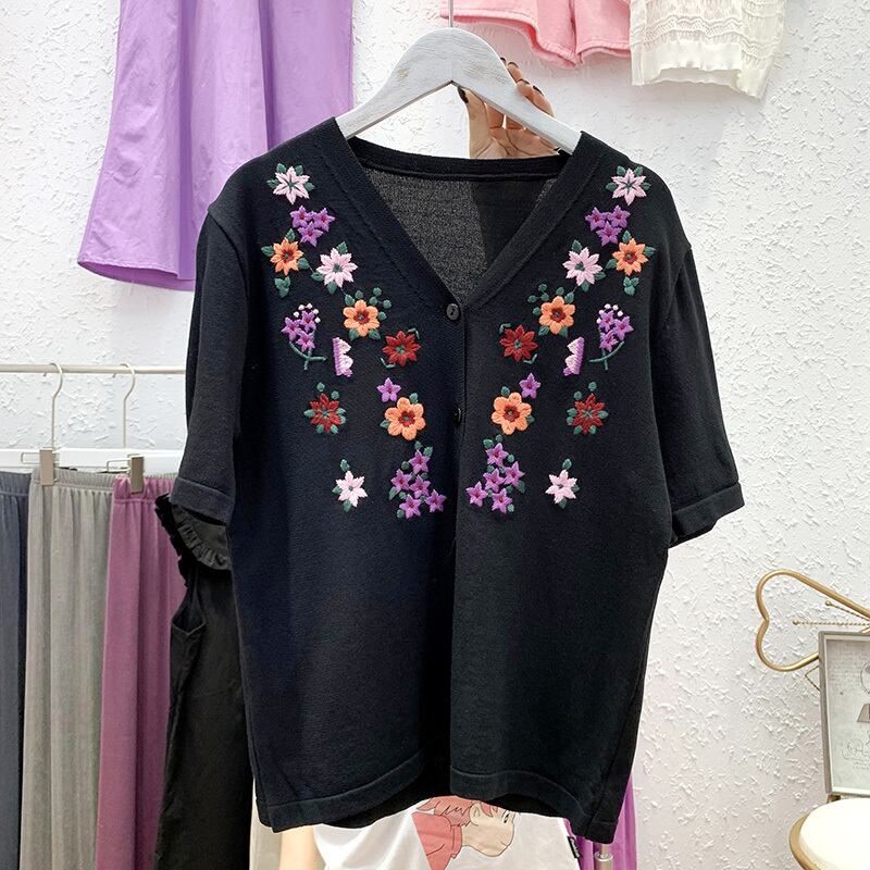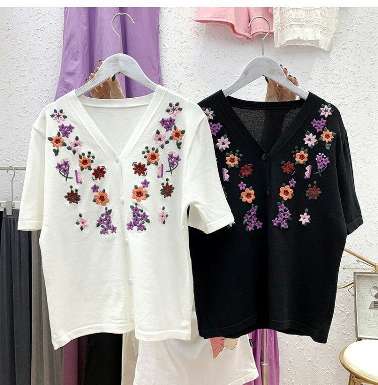 新品 花柄刺繍♥カワイイ♥Vネックニットカーディガン フラワーデザイン ⦿韓国 オルチャン K-pop アイドル ジャケット スーツ ワンピース カーディガン ニット フーディー トレーナー キャミソール スカート シャツ ブラウス 5B8326813