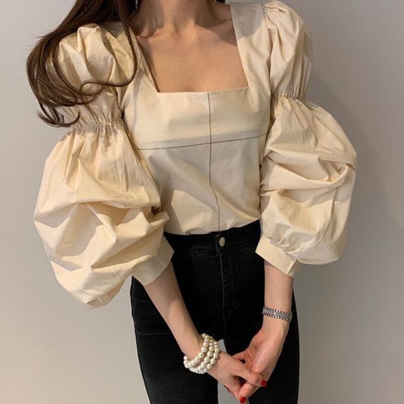 新品 スリーブシャツブラウス大人女子☆ ランタンスリーブ スクウェア ⦿韓国 オルチャン K-pop アイドル ジャケット スーツ ワンピース カーディガン ニット フーディー トレーナー キャミソール スカート シャツ ブラウス 5A9955977