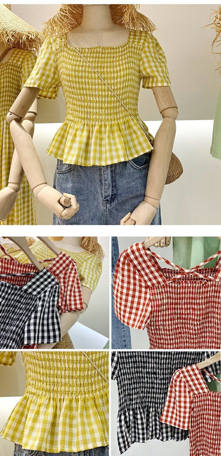 新品 ♡★チェック柄シャツブラウス大人女子☆ スウィート スクウェア ⦿韓国 オルチャン K-pop アイドル ジャケット スーツ ワンピース カーディガン ニット フーディー トレーナー キャミソール スカート シャツ ブラウス 5B7778603 | K clothig adult
