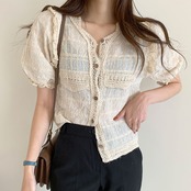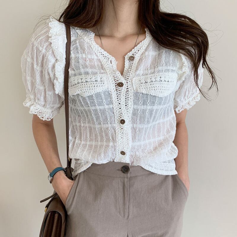 新品 Vネックレースシャツブラウストップス 大人女子☆ ⦿韓国 オルチャン K-pop アイドル ジャケット スーツ ワンピース カーディガン ニット フーディー トレーナー キャミソール スカート シャツ ブラウス 5A0369712