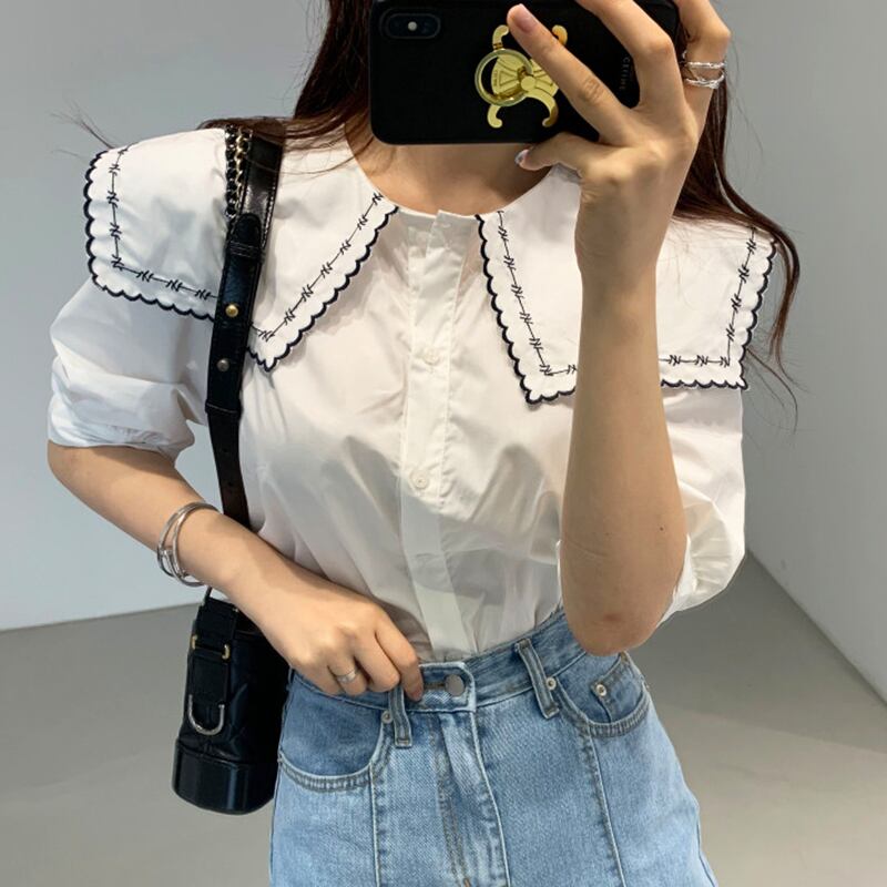 新品 スタンダード刺繍カラースリーブシャツブラウス大人女子☆ レトロ ⦿韓国 オルチャン K-pop アイドル ジャケット スーツ ワンピース カーディガン ニット フーディー トレーナー キャミソール スカート シャツ ブラウス 5A6609119