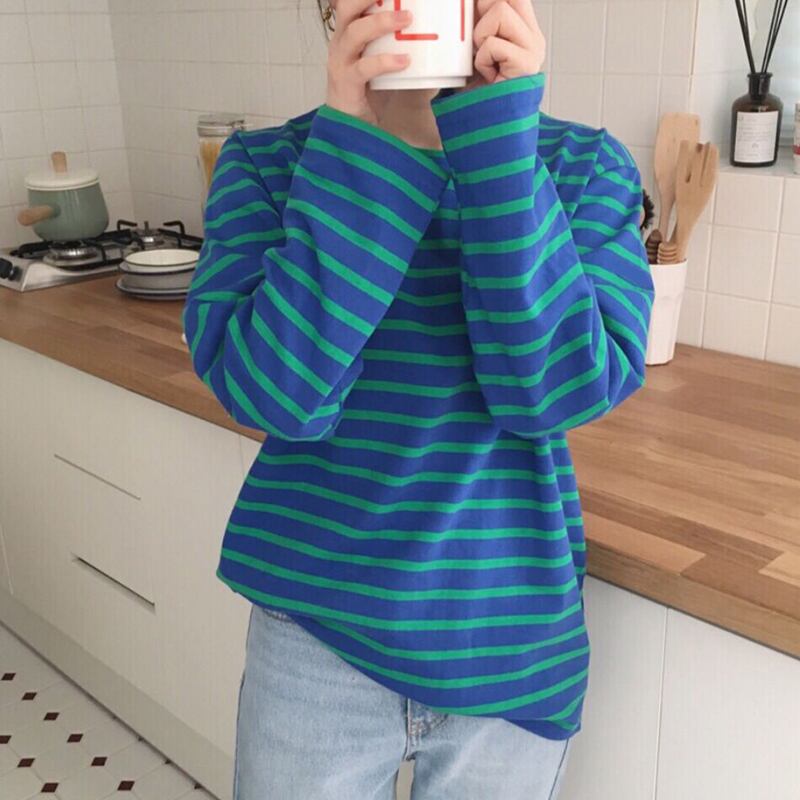新品 ラウンドネックプルオーバー ジャケット カジュアル長袖スリーブカラーストライプTシャツ 大人女子☆ ロング ⦿韓国 オルチャン K-pop アイドル ジャケット スーツ ワンピース カーディガン ニット フーディー トレーナー キャミソール スカート シャツ ブラウス 5A6851867 | K clothig adult