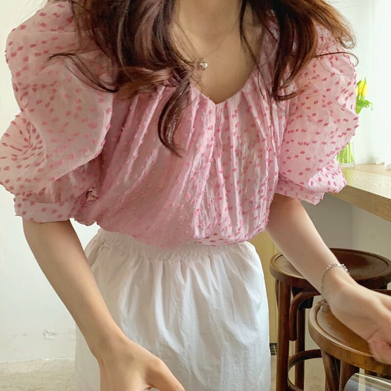 新品 Vネックスリーブシフォンシャツブラウス大人女子☆ スウィート ⦿韓国 オルチャン K-pop アイドル ジャケット スーツ ワンピース カーディガン ニット フーディー トレーナー キャミソール スカート シャツ ブラウス 5A0252441