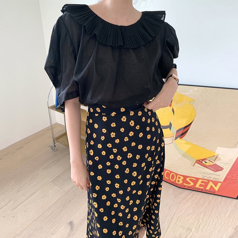 新品 スタンダードプリーツスリーブシャツブラウス花柄スカート ロング レトロ フラワーデザイン ⦿韓国 オルチャン K-pop アイドル ジャケット スーツ ワンピース カーディガン ニット フーディー トレーナー キャミソール スカート シャツ ブラウス 5A8500339