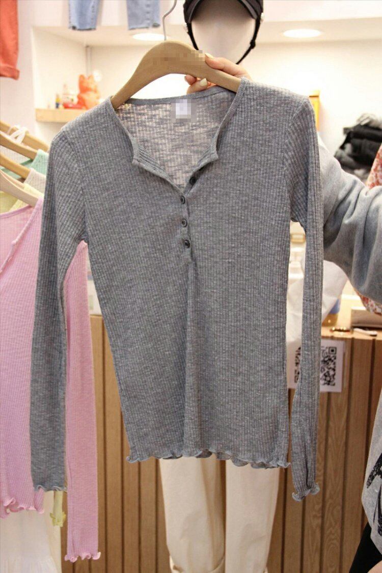 新品 Vネックボタンソリッド カラーニットTシャツ シャツブラウスカジュアルプルオーバー スリム ロング ソリッドカラー ⦿韓国 オルチャン K-pop アイドル ジャケット スーツ ワンピース カーディガン ニット フーディー トレーナー キャミソール スカート シャツ ブラウス 5B2196212 | K clothig adult