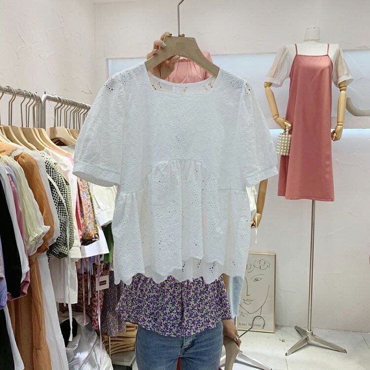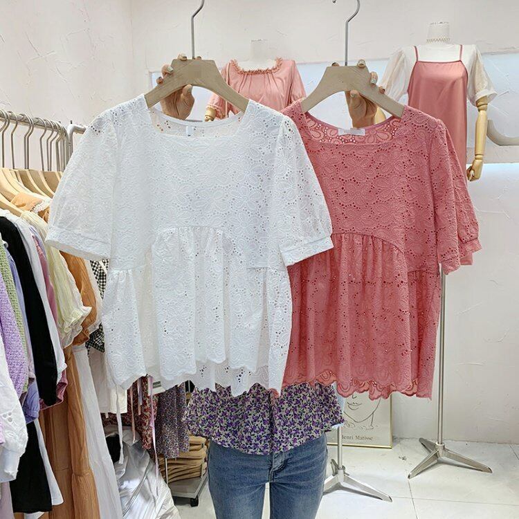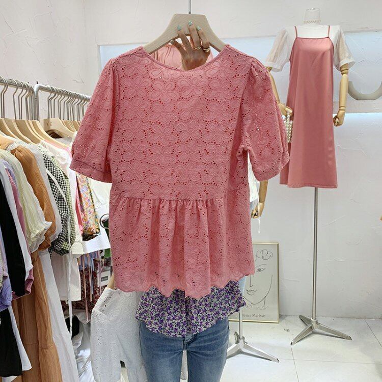 新品 ♡刺繍レースプルオーバー シャツブラウス ⦿韓国 オルチャン K-pop アイドル ジャケット スーツ ワンピース カーディガン ニット フーディー トレーナー キャミソール スカート シャツ ブラウス 5B2716463