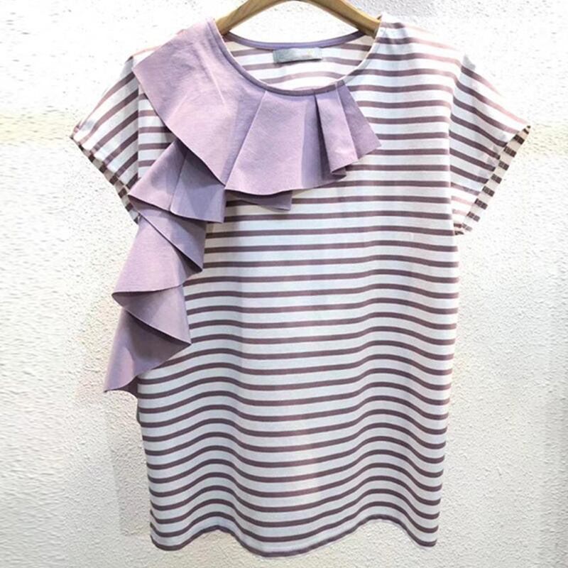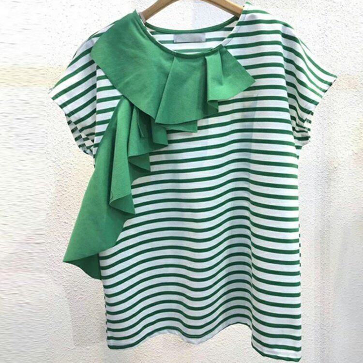 新品 サマーストライプ半袖スリーブトップス Tシャツ ショート 夏物 ステッチ ⦿韓国 オルチャン K-pop アイドル ジャケット スーツ ワンピース カーディガン ニット フーディー トレーナー キャミソール スカート シャツ ブラウス 5B6469166