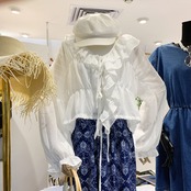 新品 サマーギャザーシフォンカーディガントップス 夏物 ⦿韓国 オルチャン K-pop アイドル ジャケット スーツ ワンピース カーディガン ニット フーディー トレーナー キャミソール スカート シャツ ブラウス 5B1445150