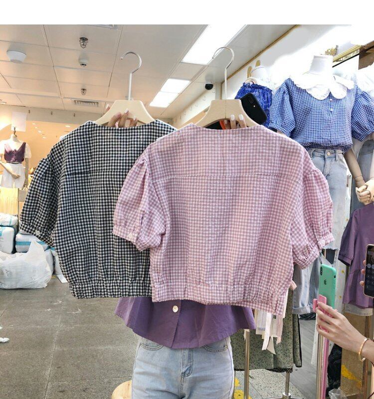 新品 ソリッド カラーチェック柄スリーブトップス ソリッドカラー ⦿韓国 オルチャン K-pop アイドル ジャケット スーツ ワンピース カーディガン ニット フーディー トレーナー キャミソール スカート シャツ ブラウス 5B0310534 | K clothig adult