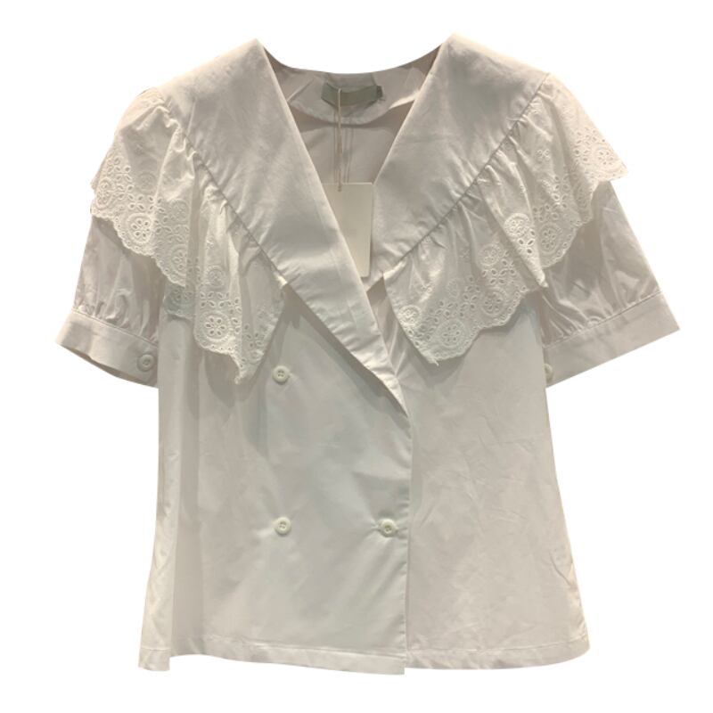 新品 サマーダブルブレストスリーブレースVネックシャツブラウス 夏物 ステッチ ⦿韓国 オルチャン K-pop アイドル ジャケット スーツ ワンピース カーディガン ニット フーディー トレーナー キャミソール スカート シャツ ブラウス 5B4343870
