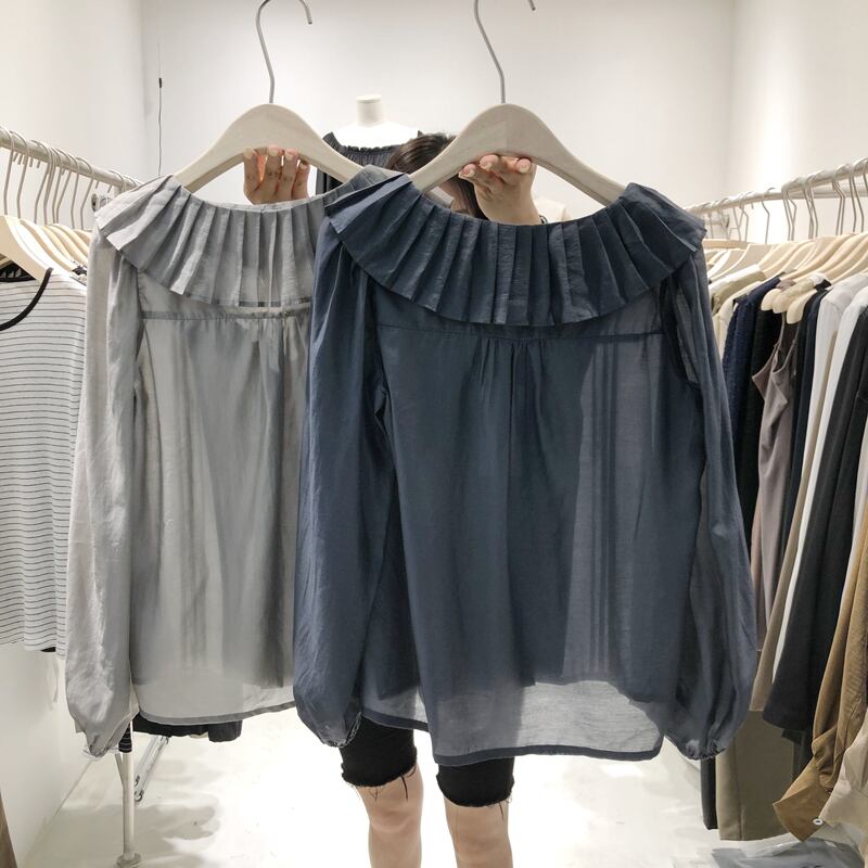 新品 ブルーカジュアル♥カワイイ♥シャツブラウストップス 大人女子☆ ロング ⦿韓国 オルチャン K-pop アイドル ジャケット スーツ ワンピース カーディガン ニット フーディー トレーナー キャミソール スカート シャツ ブラウス 5A3981938