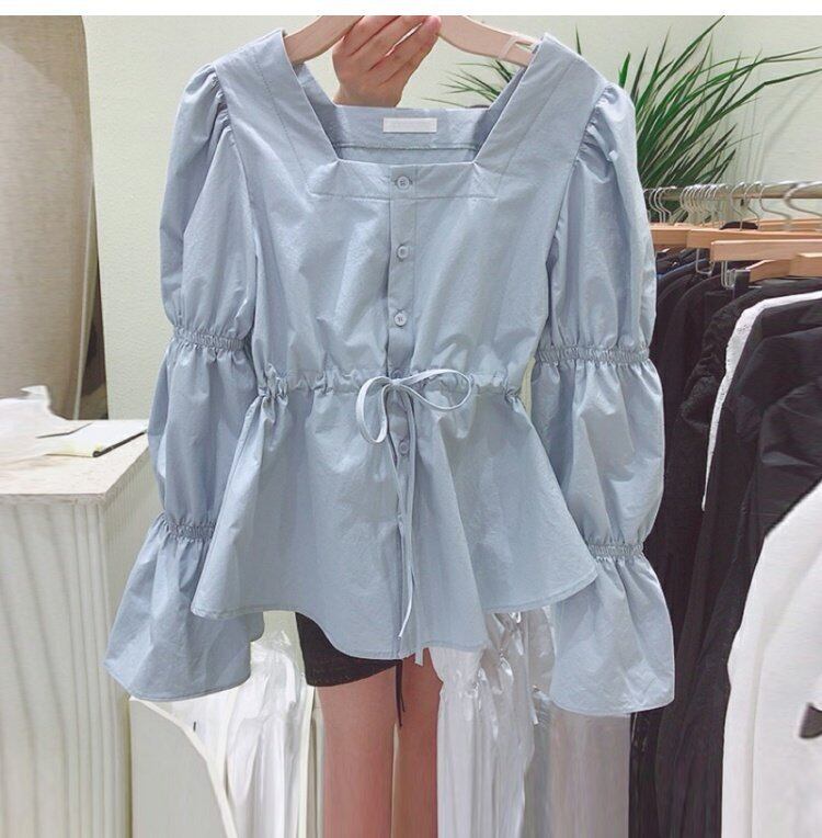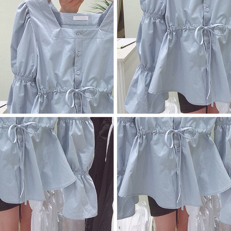 新品 ★シャツブラウス大人女子☆カジュアルトップス レース レースアップ スクウェア ⦿韓国 オルチャン K-pop アイドル ジャケット スーツ ワンピース カーディガン ニット フーディー トレーナー キャミソール スカート シャツ ブラウス 5B5644000 | K clothig adult