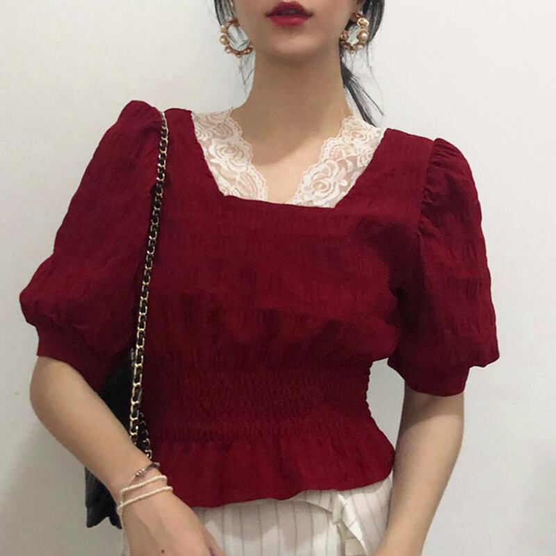 新品 スタンダードVネックレース★スリーブショートシャツブラウストップス レトロ ステッチ ⦿韓国 オルチャン K-pop アイドル ジャケット スーツ ワンピース カーディガン ニット フーディー トレーナー キャミソール スカート シャツ ブラウス 5A8783366 | K clothig adult