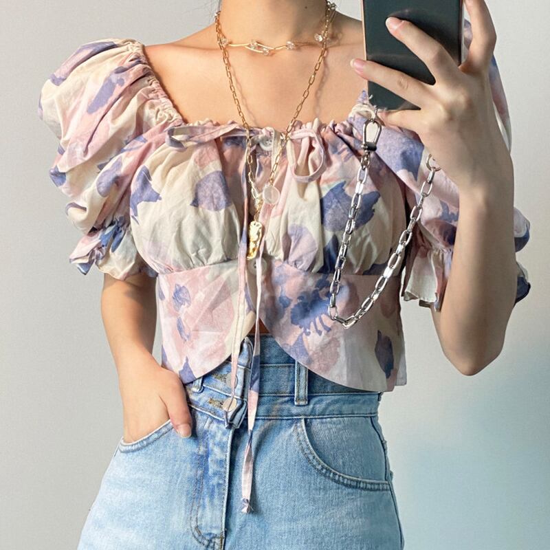 新品 スタンダードレース♥カワイイ♥ショートスリーブ花柄シャツブラウス レトロ フラワーデザイン スクウェア ⦿韓国 オルチャン K-pop アイドル ジャケット スーツ ワンピース カーディガン ニット フーディー トレーナー キャミソール スカート シャツ ブラウス 5A2695885 | K clothig adult