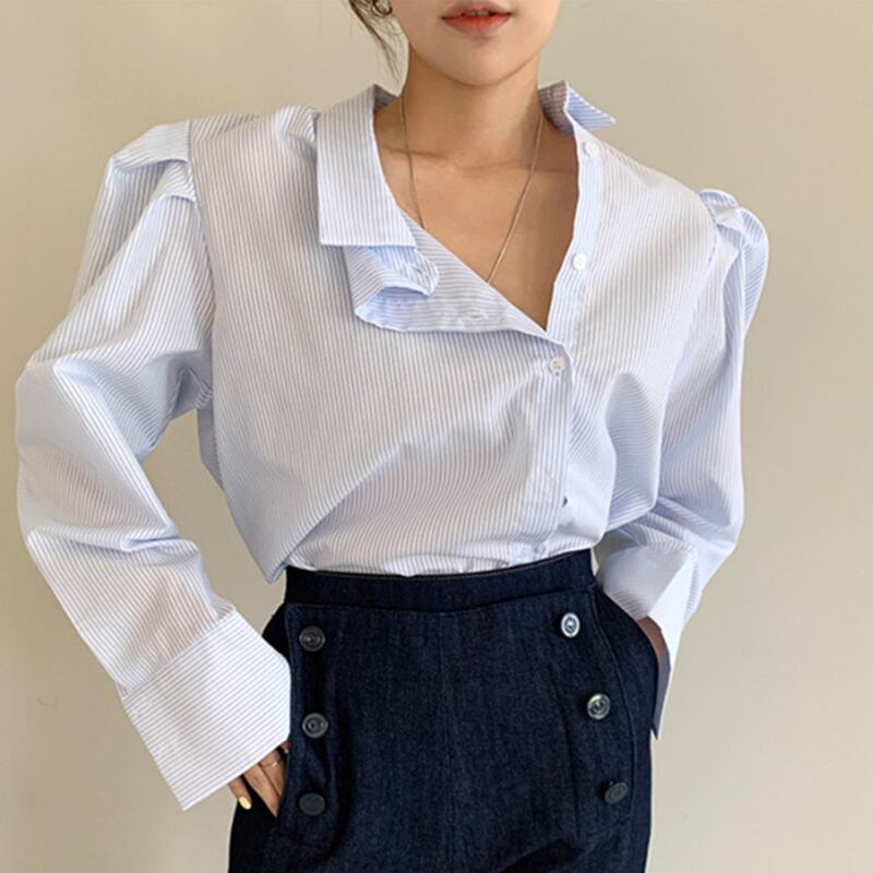 新品 サイドスリーブストライプシャツブラウス大人女子☆ ⦿韓国 オルチャン K-pop アイドル ジャケット スーツ ワンピース カーディガン ニット フーディー トレーナー キャミソール スカート シャツ ブラウス 5A0667473 | K clothig adult