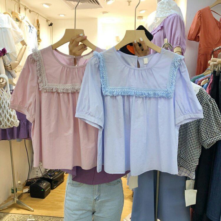 新品 カラーラウンドネック♥カワイイ♥プルオーバー トップス スウィート ピュア ⦿韓国 オルチャン K-pop アイドル ジャケット スーツ ワンピース カーディガン ニット フーディー トレーナー キャミソール スカート シャツ ブラウス 5B3448359