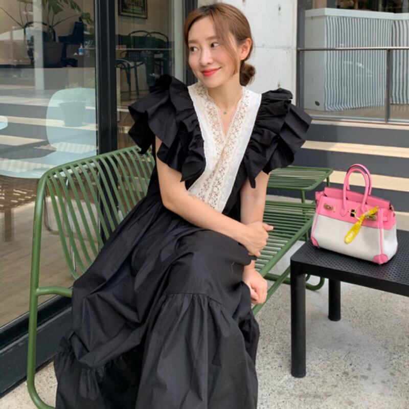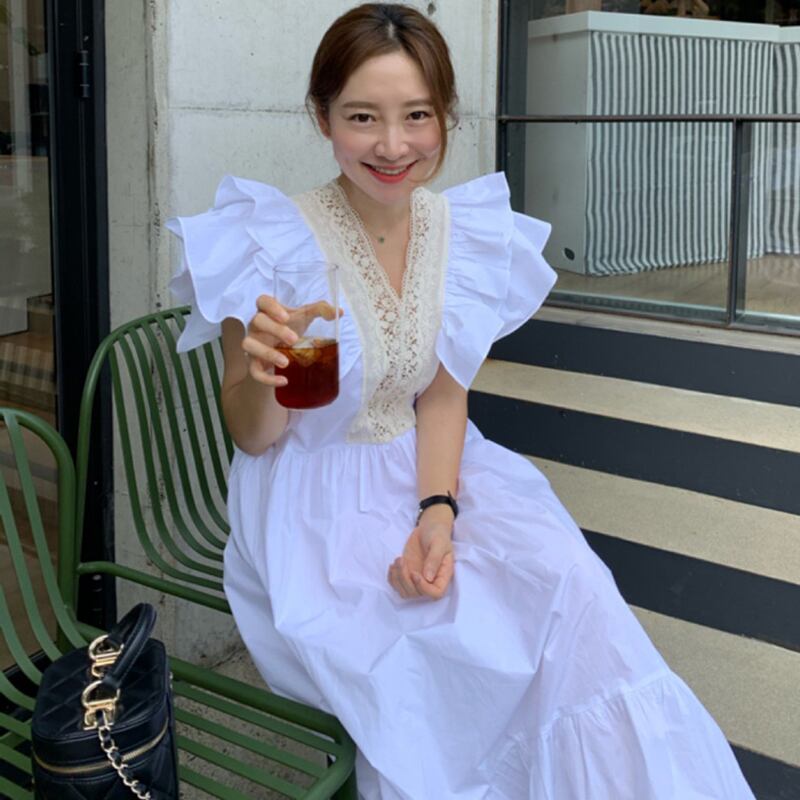 新品 スタンダードVネックレース♥カワイイ♥ラッフル大人女子☆ レトロ エレガント ステッチ ⦿韓国 オルチャン K-pop アイドル ジャケット スーツ ワンピース カーディガン ニット フーディー トレーナー キャミソール スカート シャツ ブラウス 5A9020619 | K clothig adult