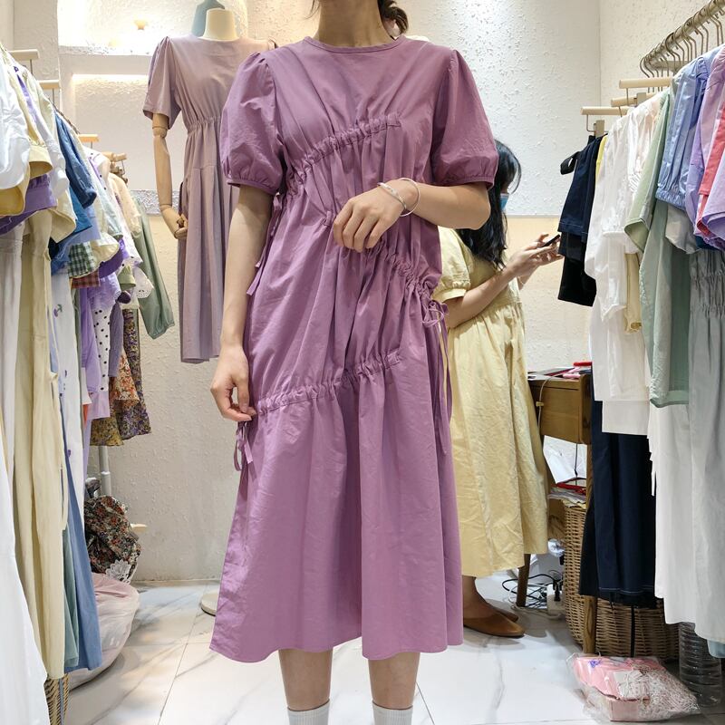 新品 サマーラウンドネック♥カワイイ♥ギャザールーズドレス ワンピース スウィート 夏物 ピュア ⦿韓国 オルチャン K-pop アイドル ジャケット スーツ ワンピース カーディガン ニット フーディー トレーナー キャミソール スカート シャツ ブラウス 5B8551252