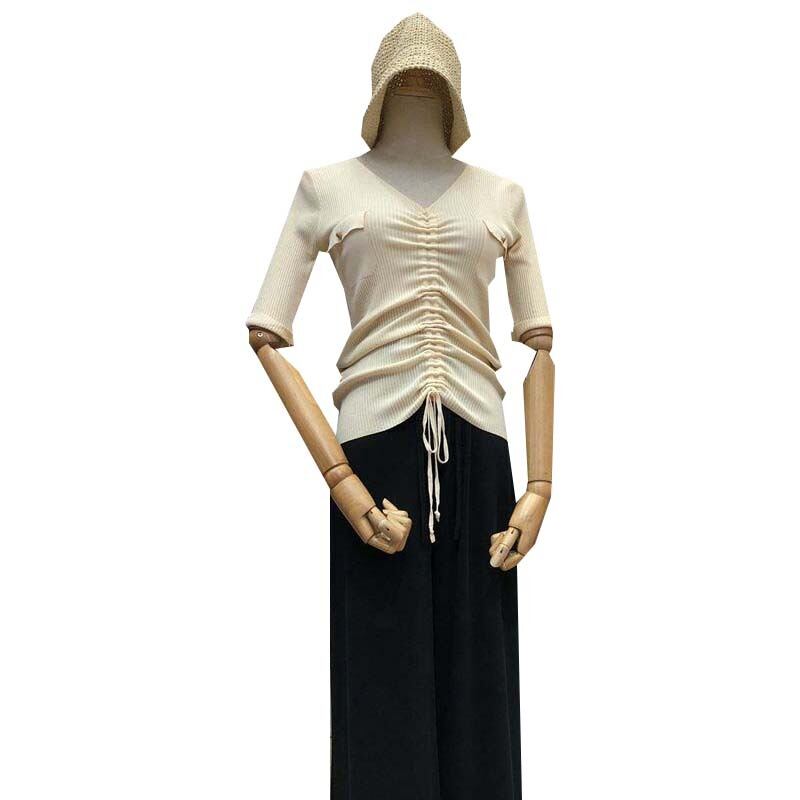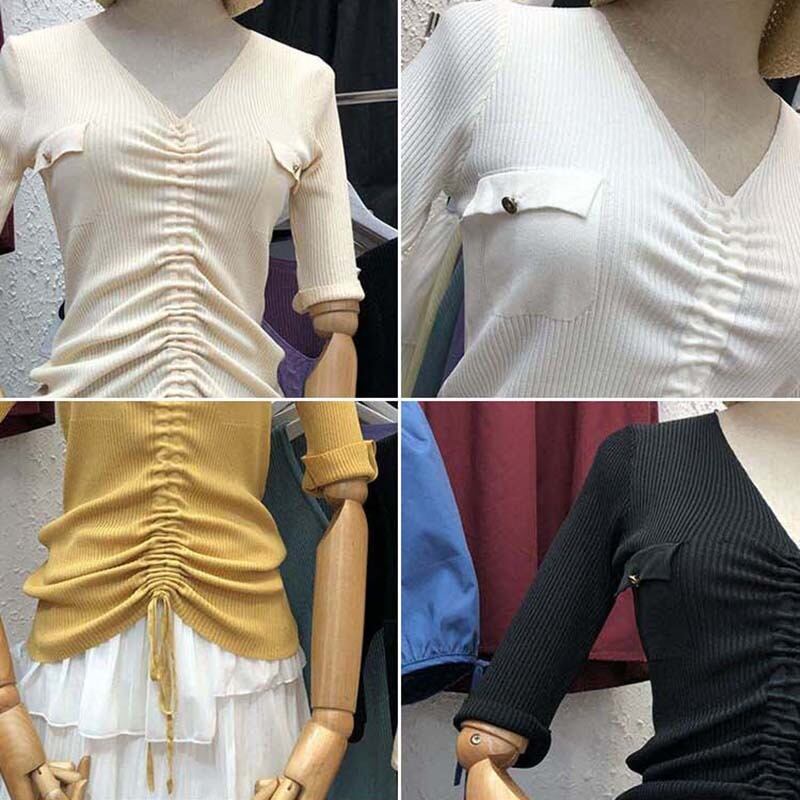 新品 ポケットギャザーニットトップス レース シルク レースアップ ⦿韓国 オルチャン K-pop アイドル ジャケット スーツ ワンピース カーディガン ニット フーディー トレーナー キャミソール スカート シャツ ブラウス 5B0962204