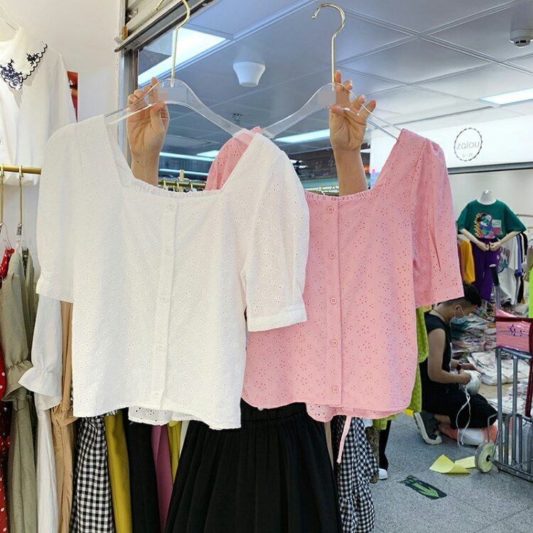 新品 バック♥カワイイ♥刺繍シャツブラウス コットン スウィート スクウェア ⦿韓国 オルチャン K-pop アイドル ジャケット スーツ ワンピース カーディガン ニット フーディー トレーナー キャミソール スカート シャツ ブラウス 5B8039935