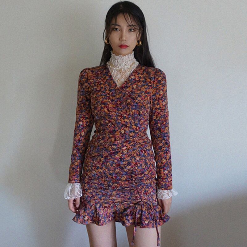 新品 スタンダードレースシャツブラウスVネックプリーツ花柄 レトロ ⦿韓国 オルチャン K-pop アイドル ジャケット スーツ ワンピース カーディガン ニット フーディー トレーナー キャミソール スカート シャツ ブラウス 5A2568344