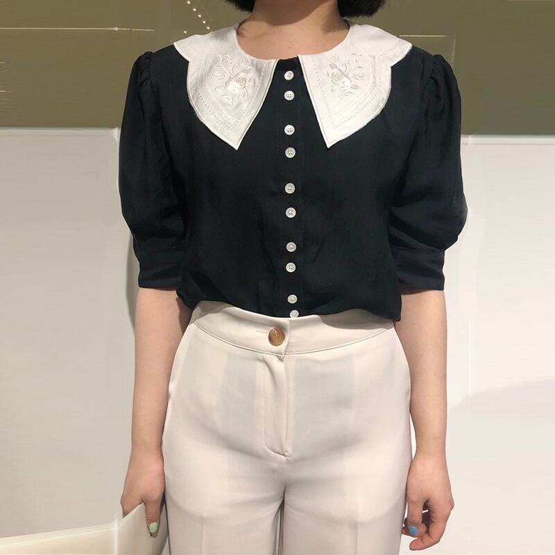 新品 シャツブラウススリーブトップス レッド 刺繍 ⦿韓国 オルチャン K-pop アイドル ジャケット スーツ ワンピース カーディガン ニット フーディー トレーナー キャミソール スカート シャツ ブラウス 5B0083191