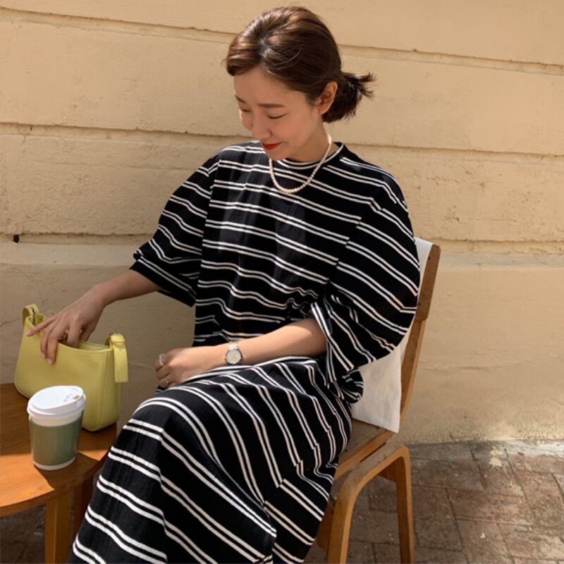 新品 スタンダードラウンドネックカジュアルスリーブスリットストライプロングスカート レトロ ⦿韓国 オルチャン K-pop アイドル ジャケット スーツ ワンピース カーディガン ニット フーディー トレーナー キャミソール スカート シャツ ブラウス 5A9348474 | K clothig adult