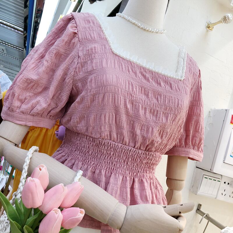 新品 カラー♡パールストレッチ★ブラウス エラスティック 伸縮 スウィート ピュア 真珠 ⦿韓国 オルチャン K-pop アイドル ジャケット スーツ ワンピース カーディガン ニット フーディー トレーナー キャミソール スカート シャツ ブラウス 5B6282026