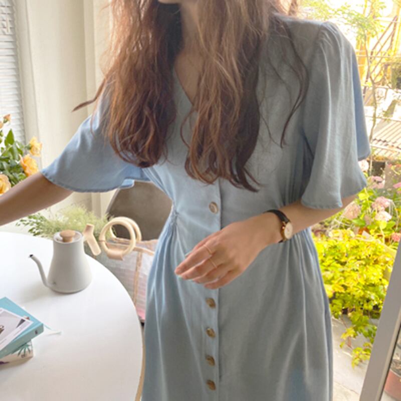新品 ミニマリストVネック★プリーツロング♥カワイイ♥ ⦿韓国 オルチャン K-pop アイドル ジャケット スーツ ワンピース カーディガン ニット フーディー トレーナー キャミソール スカート シャツ ブラウス 5A5420548