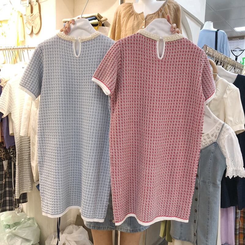新品 カラーチェック柄ラウンドネック スウィート ピュア ⦿韓国 オルチャン K-pop アイドル ジャケット スーツ ワンピース カーディガン ニット フーディー トレーナー キャミソール スカート シャツ ブラウス 5B8248290