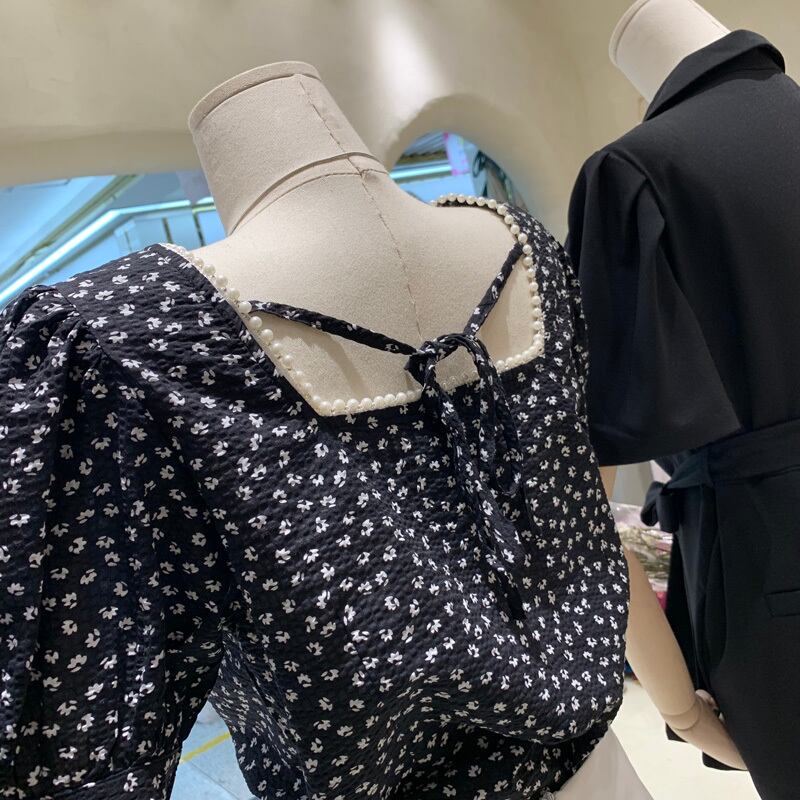 新品 花柄プリントスリーブバックバンドトップス スクウェア ⦿韓国 オルチャン K-pop アイドル ジャケット スーツ ワンピース カーディガン ニット フーディー トレーナー キャミソール スカート シャツ ブラウス 5B3019149