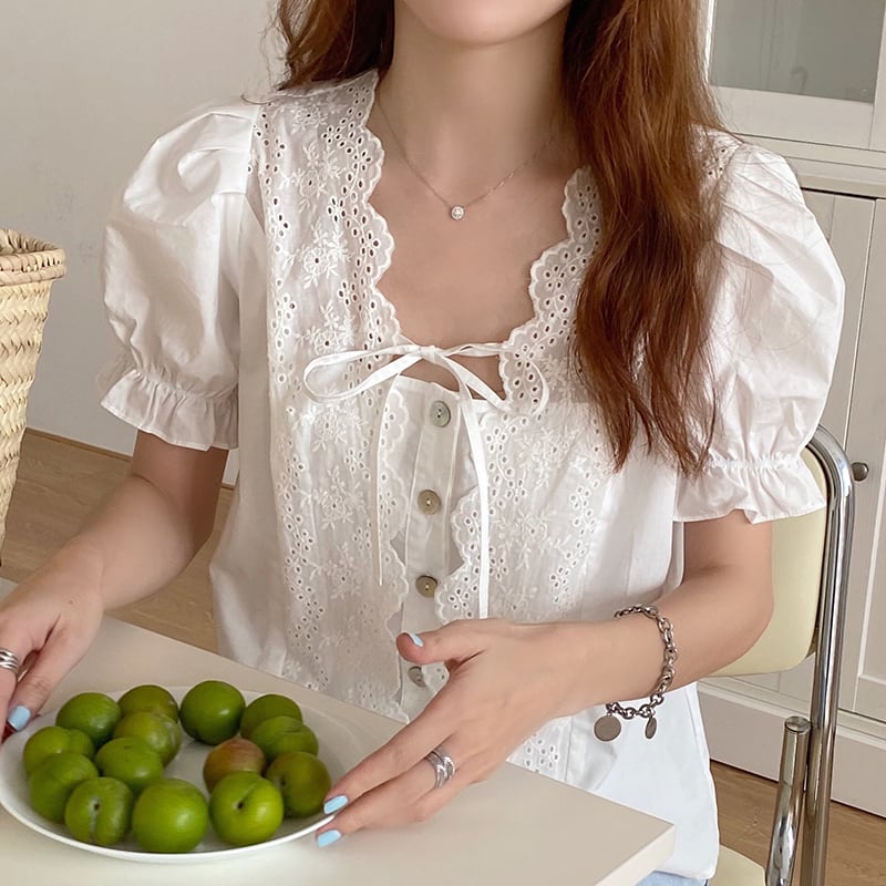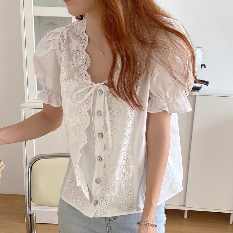 新品 スタンダードレースシングルブレストスリーブシャツブラウストップス レトロ スクウェア ステッチ ⦿韓国 オルチャン K-pop アイドル ジャケット スーツ ワンピース カーディガン ニット フーディー トレーナー キャミソール スカート シャツ ブラウス 5A6973835
