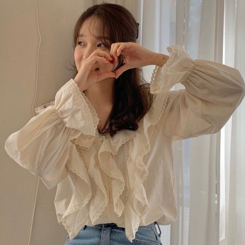 新品 ♥カワイイ♥Vネックラッフルスリーブシャツブラウス レッド スウィート ⦿韓国 オルチャン K-pop アイドル ジャケット スーツ ワンピース カーディガン ニット フーディー トレーナー キャミソール スカート シャツ ブラウス 5A6036986 | K clothig adult