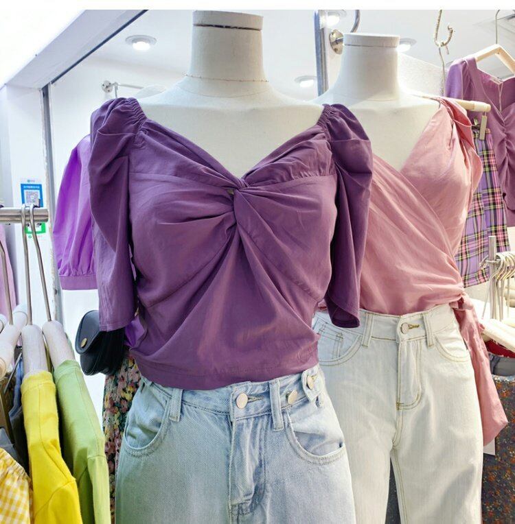 新品 クロスVネックシャツブラウススリム♥カワイイ♥ショートスリーブトップス ⦿韓国 オルチャン K-pop アイドル ジャケット スーツ ワンピース カーディガン ニット フーディー トレーナー キャミソール スカート シャツ ブラウス 5B5599223 | K clothig adult