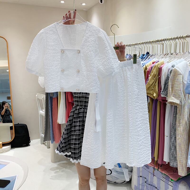 新品 ショートダブルブレストカーディガンストレッチスカート コットン エラスティック 伸縮 ⦿韓国 オルチャン K-pop アイドル ジャケット スーツ ワンピース カーディガン ニット フーディー トレーナー キャミソール スカート シャツ ブラウス 5B1886260