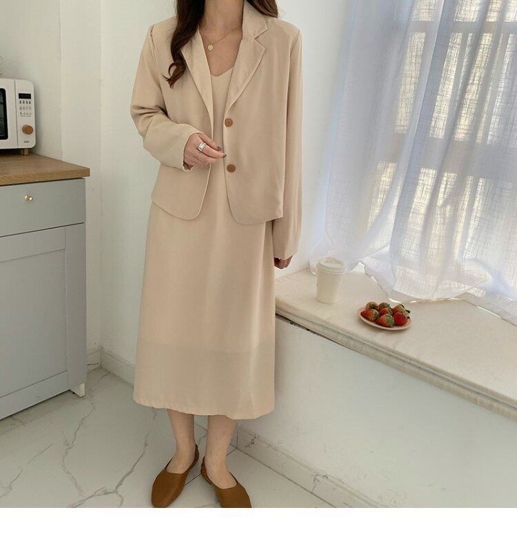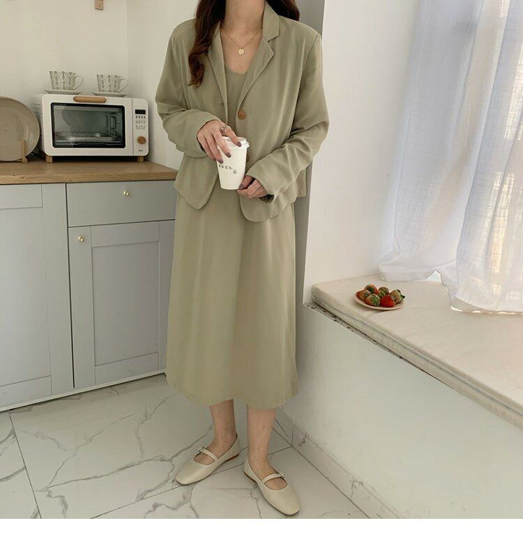 新品 ロングジャケット ソリッド カラーVネックノースリーブスカート ソリッドカラー ⦿韓国 オルチャン K-pop アイドル ジャケット スーツ ワンピース カーディガン ニット フーディー トレーナー キャミソール スカート シャツ ブラウス 5B1709648
