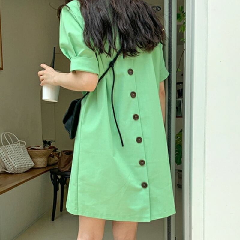 新品 パステルグリーンバックボタン半袖スリーブシャツワンピースドレスOP 大人女子☆ ショート ホワイト ⦿韓国 オルチャン K-pop アイドル ジャケット スーツ ワンピース カーディガン ニット フーディー トレーナー キャミソール スカート シャツ ブラウス 5A8125647